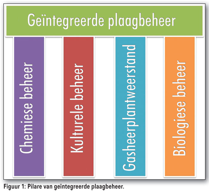 Geïntegreerde plaagbeheer kan in verskillende beheermetodes verdeel word, naamlik, chemiese beheer, biologiese beheer, gas heerplantweerstand en kulturele beheer (Figuur 1).