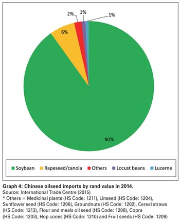 China is also a net importer of oilseeds. Between 2011 and 2014, imports have grown exponentially, from R230 billion to R497 billion.
