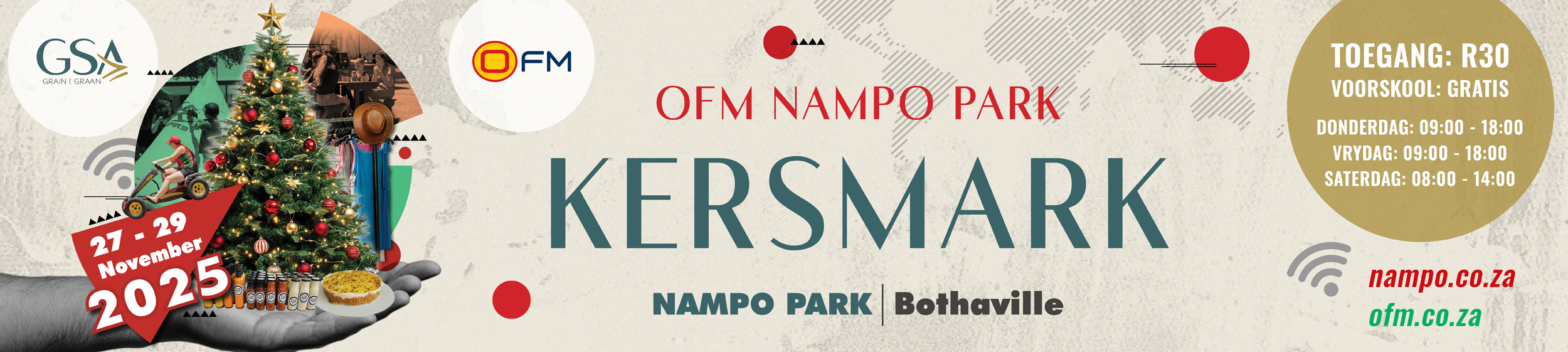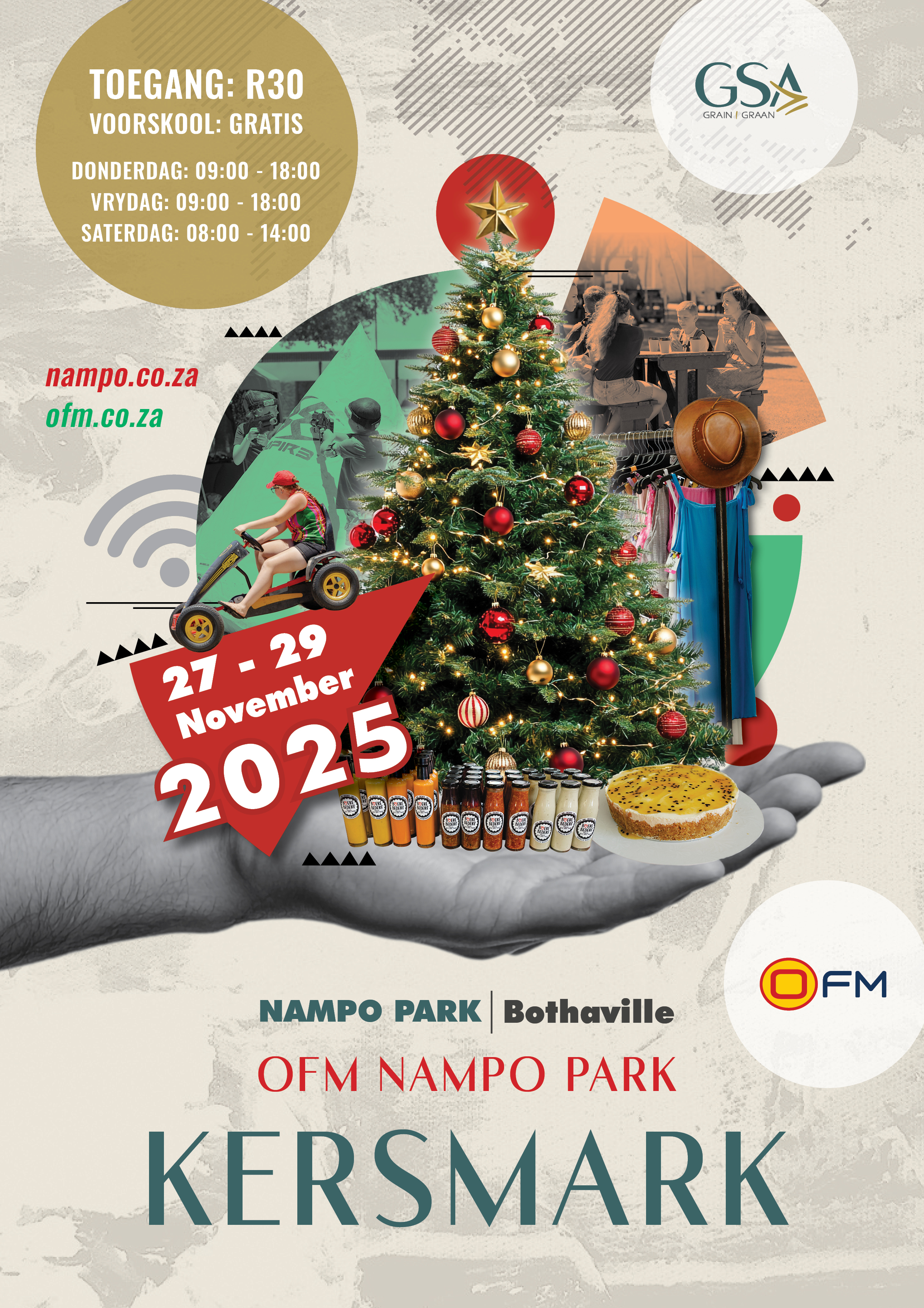 The OFM NAMPO Park Christmas Market takes place from 27 - 29 November 2025 at NAMPO Park outside Bothaville.