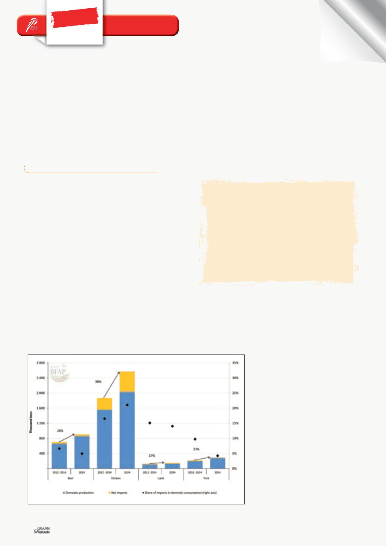 Graph 1: South African meat consumption, production and net imports: 2024 versus 2012 - 2014